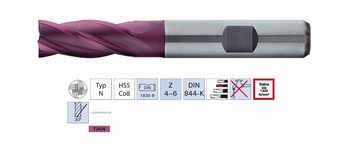 Fraise 4-6 dents HSS Cobalt 8% TIALN 30° - Usinage acier 1400 N-mm² – Série standard
