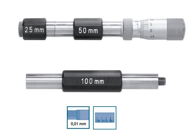 Micromètre d'intérieur venier mesure deux points avec rallonges - 50 à 150 mm