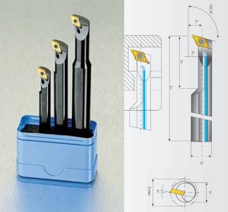 Barre d'alésage MINI 107,5° - pour plaquettes SDQC
